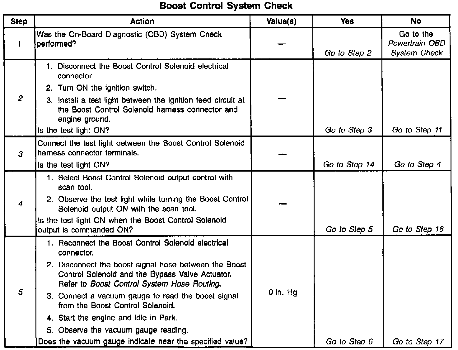 4. Ensures that the PCM can control the Output Driver Module (ODM) output for the Boost Control Solenoid and the Boost Control Solenoid control circuit is not open.