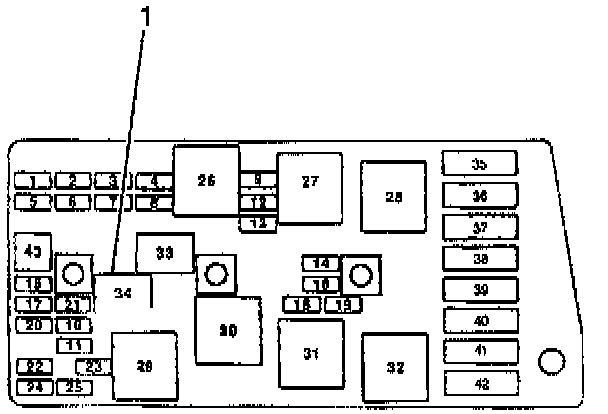 4. Remove the fuel pump relay (1) from the underhood Bussed Electrical Center (BEC).