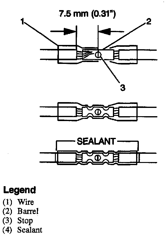 ^ Do not use the crimp and sealed splice sleeve to form a splice with more than two wires coming together.
