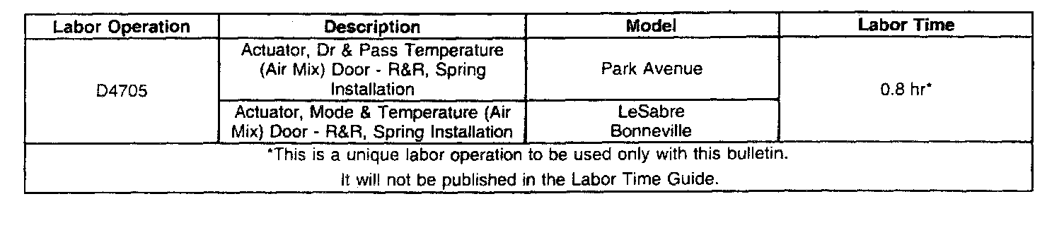 Install a deflector spring, P/N 25732764, in the covers of the two air mix (temperature) actuators on the Park Avenue HVAC module and in the covers of the mode and air mix (temperature) actuators on the Bonneville and LeSabre HVAC module.