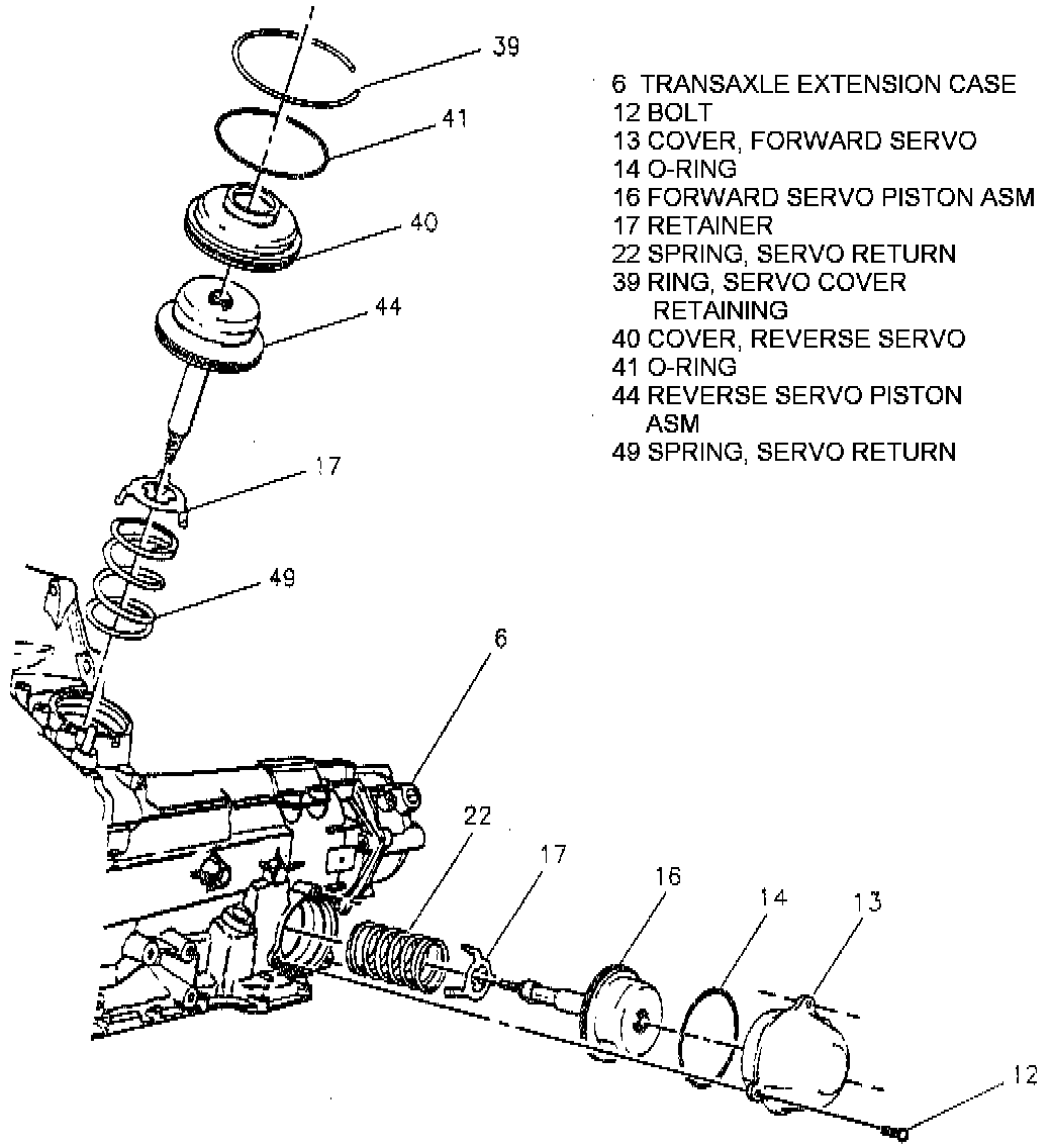 - For disassembly of the servo piston assembly, refer to TRANSAXLE UNIT REPAIR.