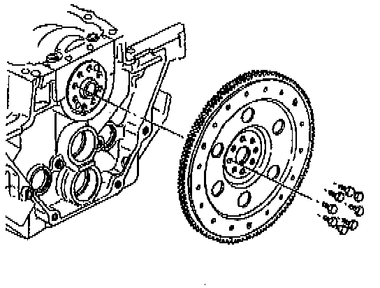 5. Inspect the flexplate for worn or broken teeth, and cracks. Replace if necessary.