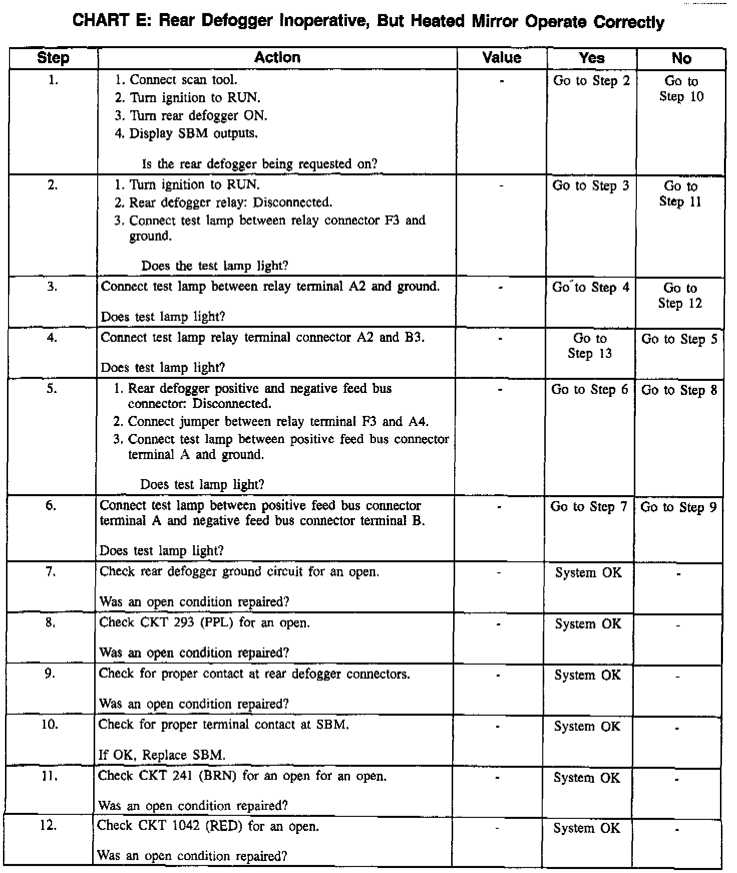 Chart E Rear Defogger Inop, But Heated Mirror Operational