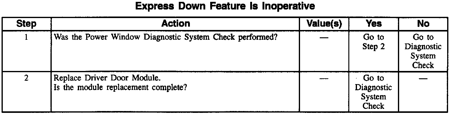Express Down Feature Is Inoperative: