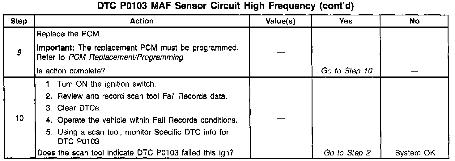 If DTC P0103 cannot be duplicated, the information included in the Fail Records data can be useful in determining vehicle mileage since the DTC was last set.