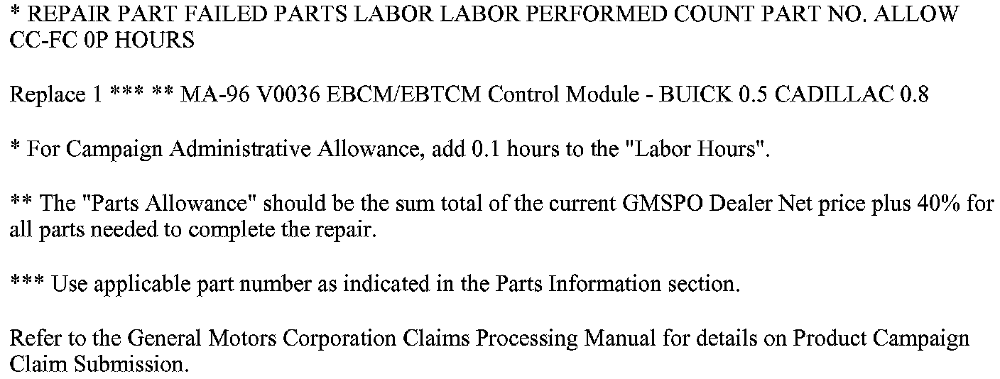 Any dealer not receiving a computer listing with the campaign bulletin has no ADDITIONAL involved vehicles currently assigned AND SHOULD NOT ORDER CAMPAIGN PARTS FOR USE AS SHELF STOCK.