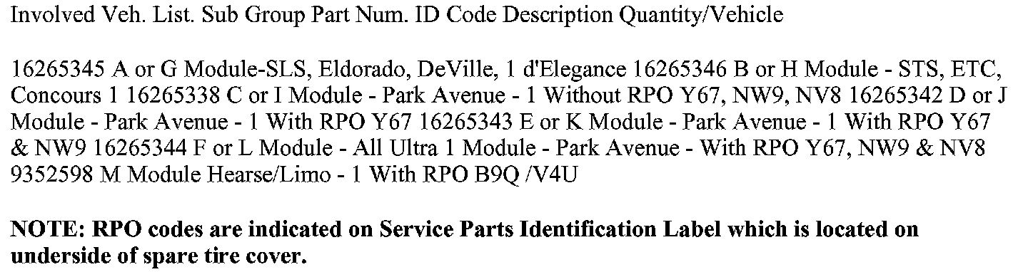 OPTION RPO DESCRIPTION (BUICK PARK AVENUE ONLY)