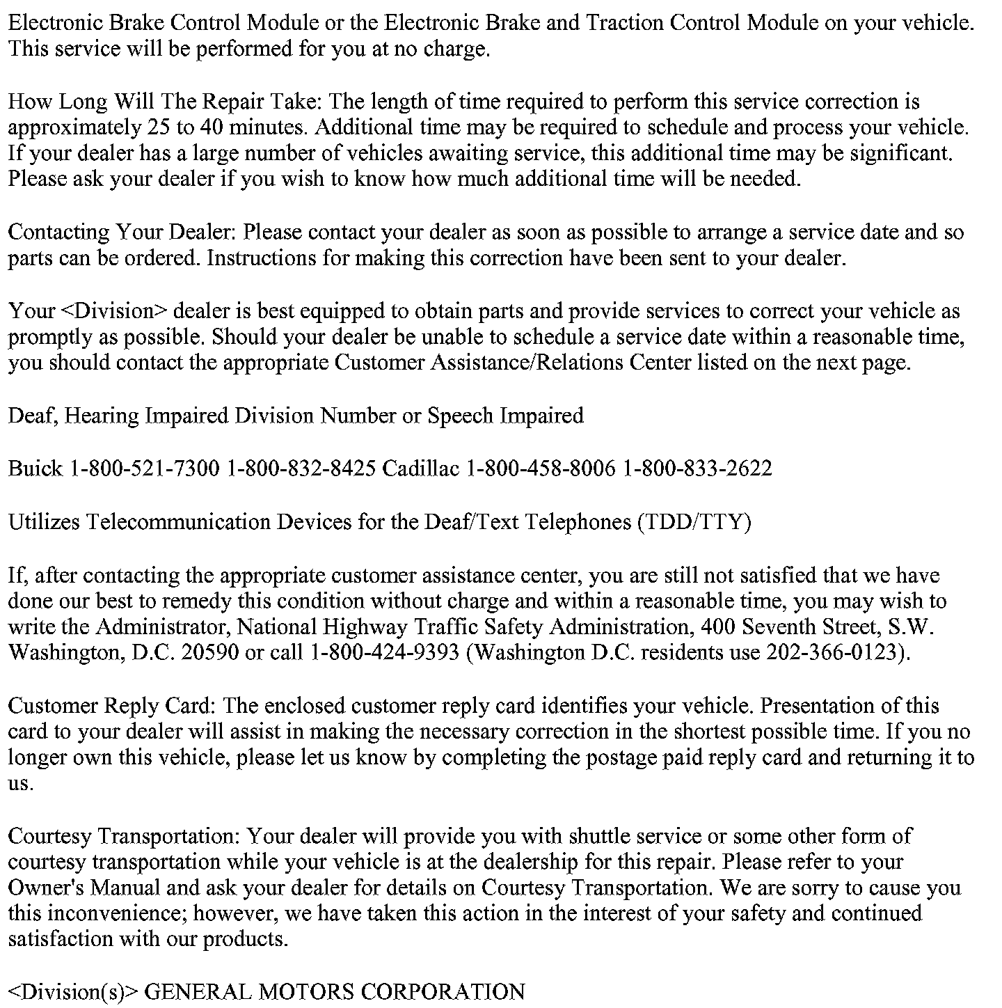 Recall - EBCM/EBTCM Module Replacement