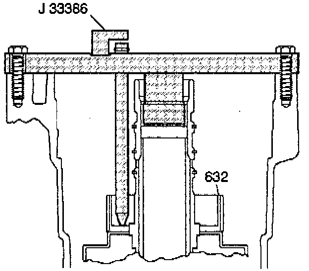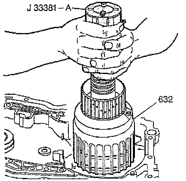15. Install J 33381-A into the input clutch housing (632).