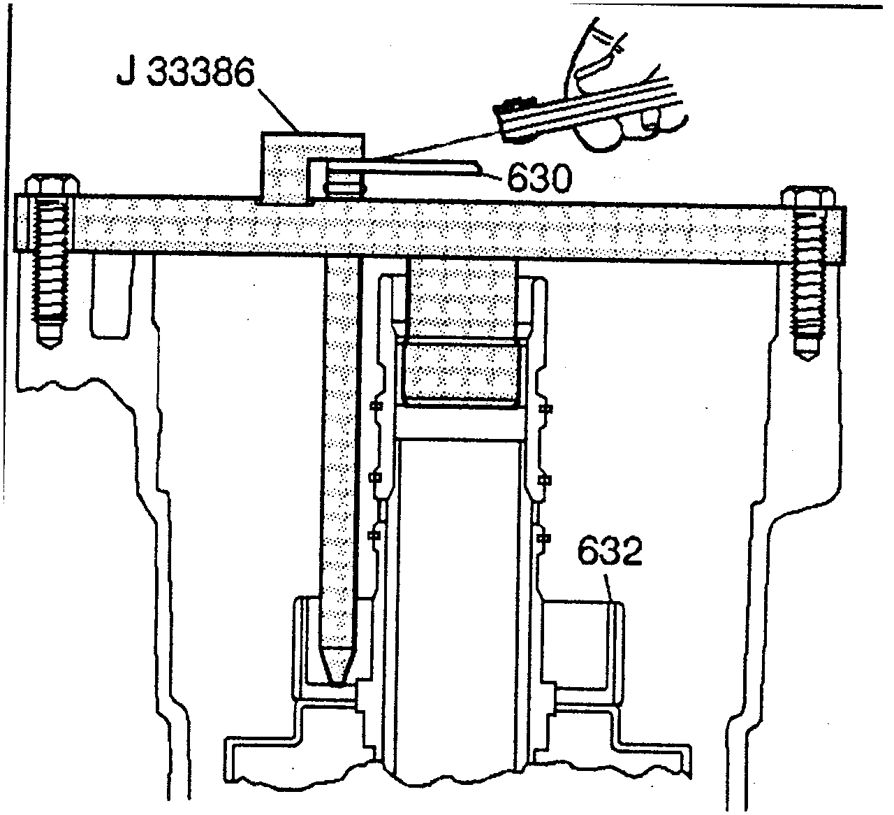 9. Tighten the bolts in order to securely hold J 33386.
