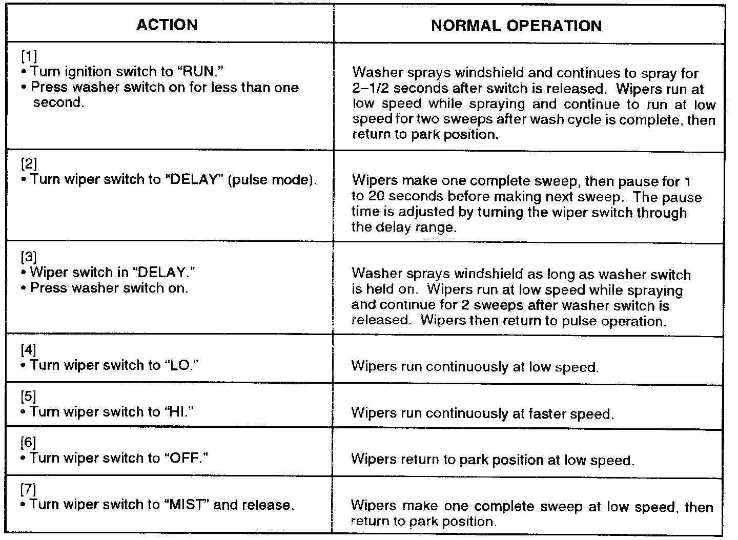 Pulse Wiper / Washer System Check: