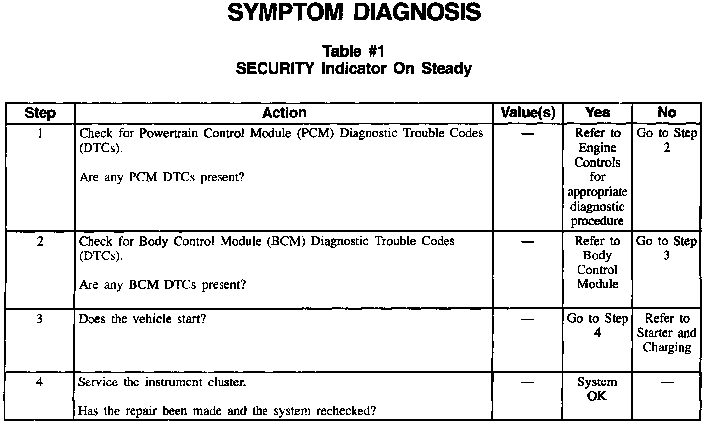 Table #1 SECURITY Indicator On Steady: