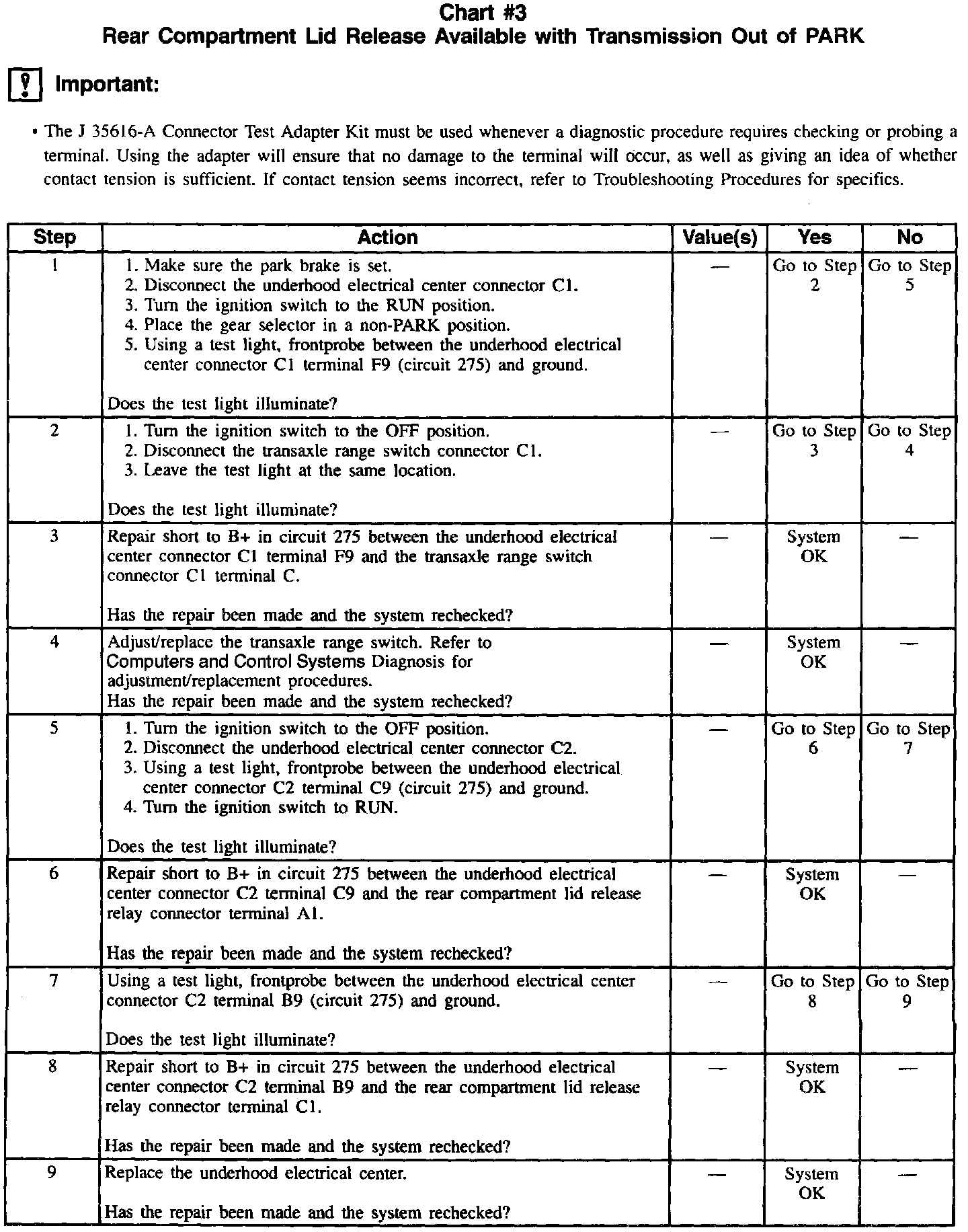 Chart #3 Rear Compartment Lid Release Available With Transmission Out Of PARK: