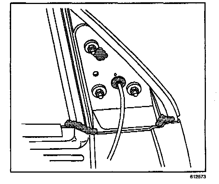 Fill the holes shown with a thumb grade sealer. Use Strip Caulk Black P/N 08578 by 3M(R) or the equivalent. Seal all the shaded areas as shown in the illustration.