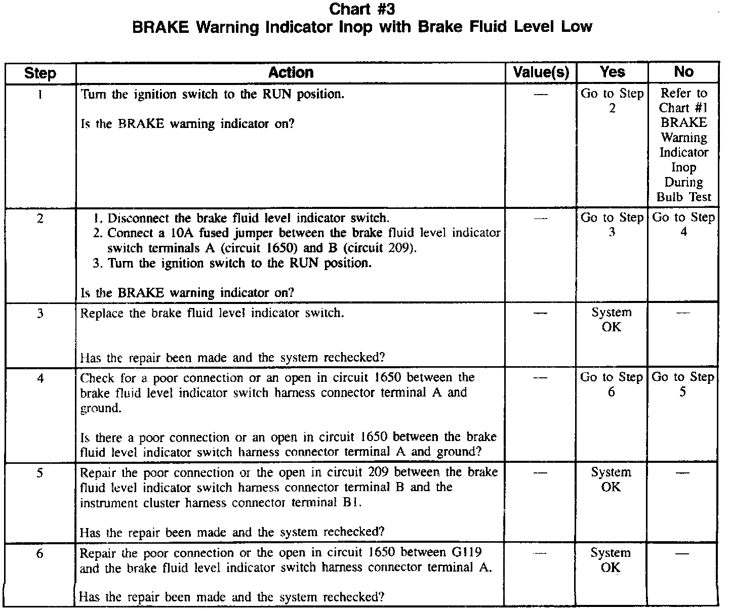 Chart #3 BRAKE Waring Indicator INOP With Brake Fluid Level Low: