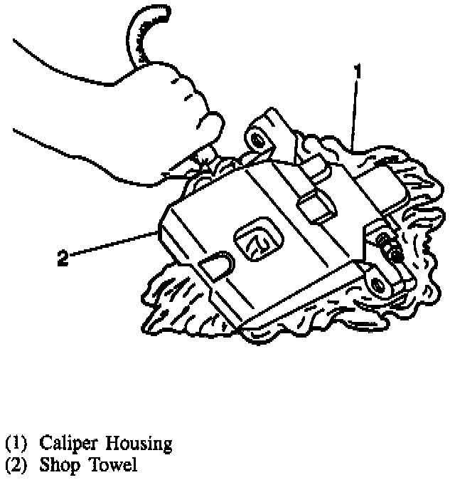 NOTICE: Use clean cloths to pad interior of caliper housing during piston removal. Use just enough air to ease the piston out of the bore. If the piston is blown out, even with the padding provided, it may be damaged.
