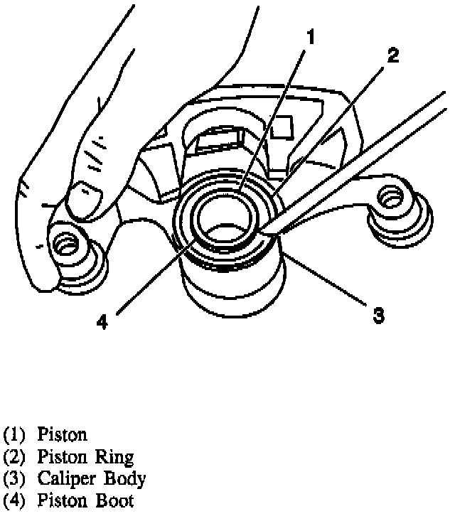 NOTICE: Do not use a metal tool to remove the piston seal from the caliper housing bore. Using a metal tool may damage the caliper bore or seal groove.