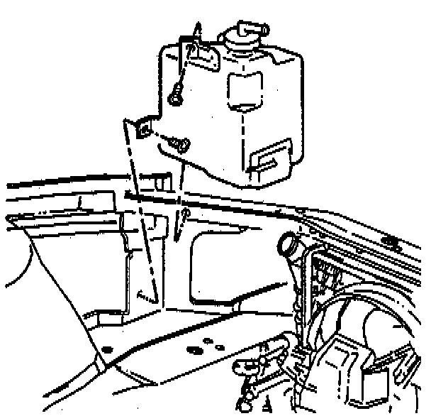2. Front upper retainer to coolant reservoir and front fender upper rail.