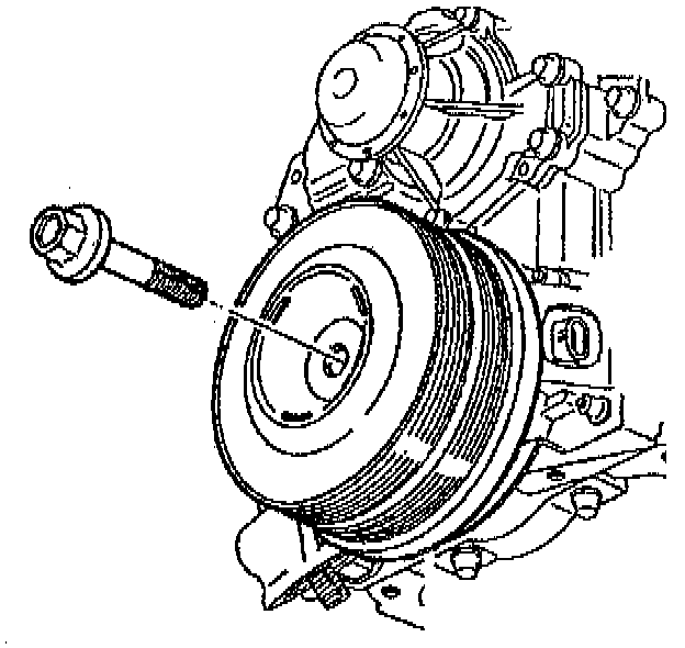 9. Remove the crankshaft balancer retaining bolt.
