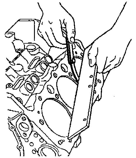 11. Inspect the oil pan rail for nicks. Inspect the front cover attaching area for nicks. Use a flat mill file in order to remove any nicks.