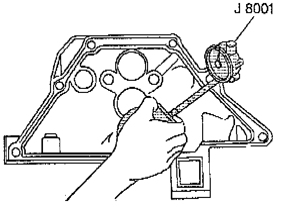 a. Hold the gauge plate flat against the crankshaft flange.