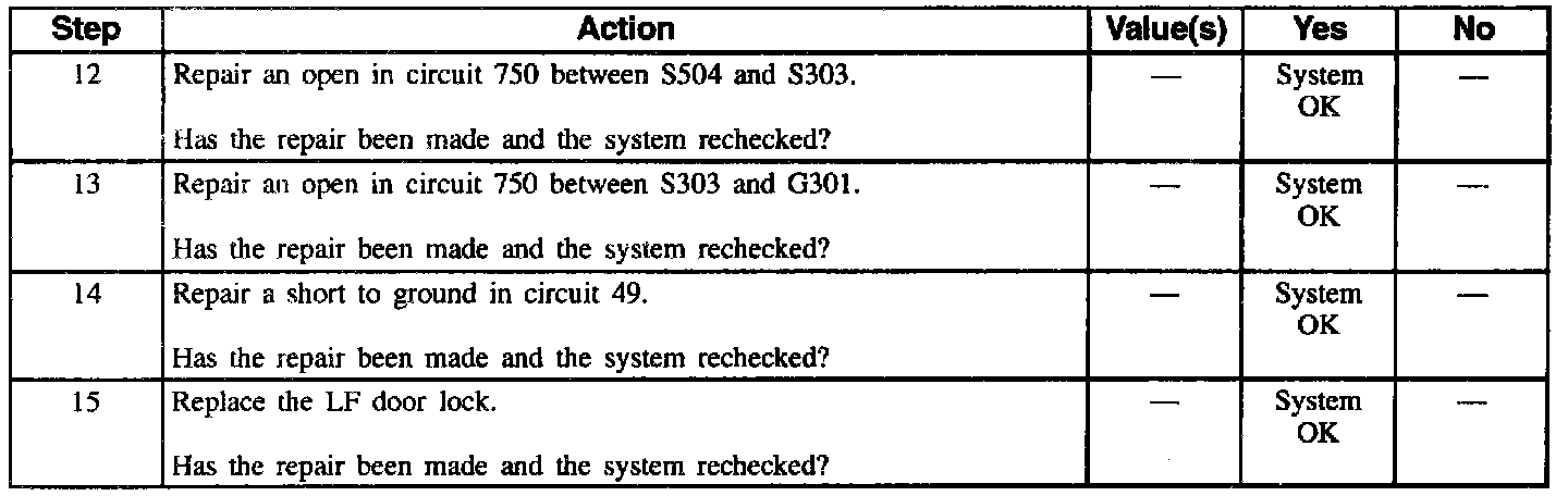 Table #5 Ignition Key Reminder Inoperative (Part 2 Of 2):