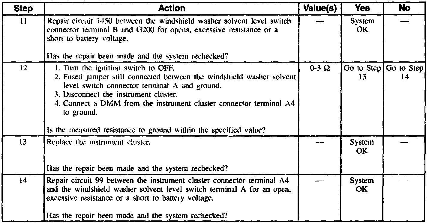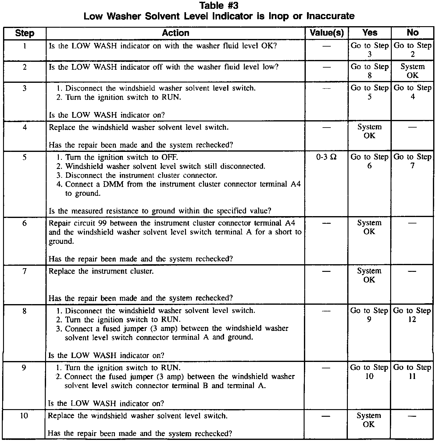 Table 3 Low Washer Solvent Level Indicator Is Inop/Inaccurate