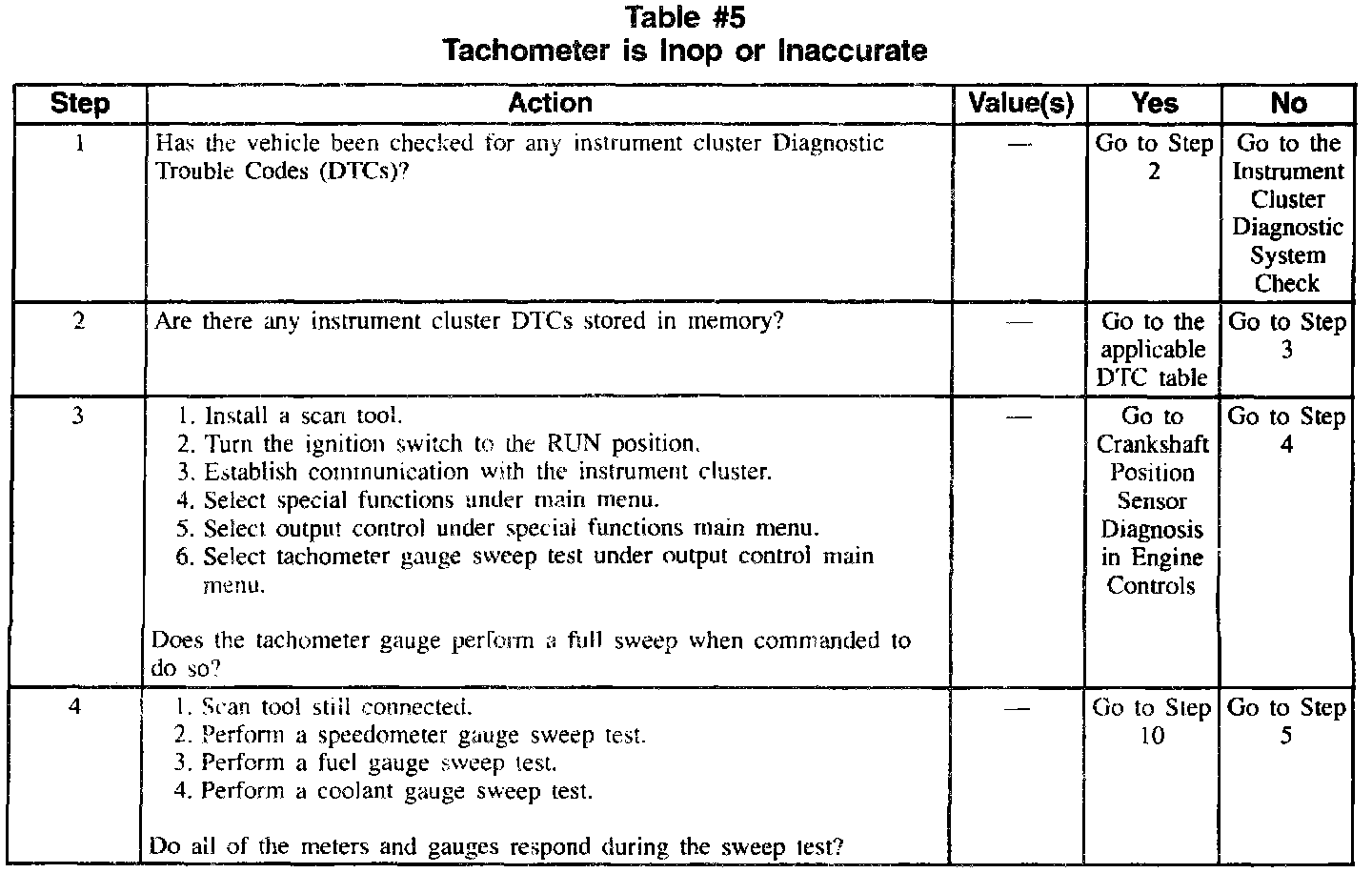 Table 5 Tachometer Is Inoperative/Inaccurate