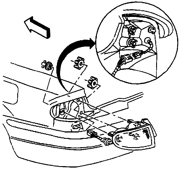 6. Taillamp bulb sockets from taillamp by pressing down on taillamp socket locking tab and turn counter clockwise.