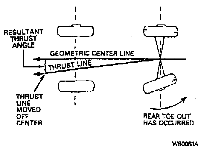 The front wheels aim or steer the vehicle, but the rear wheels control tracking. This tracking action is related to thrust angle. Thrust angle is defined as the path that the rear wheels will take. Ideally, the thrust angle would be geometrically aligned with the body centerline.