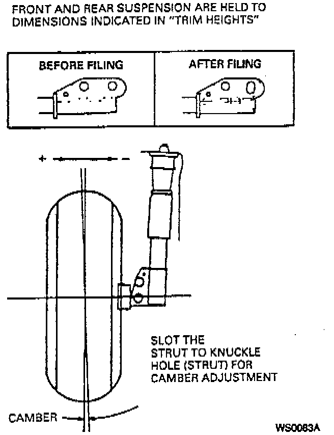 ^ Lower strut to knuckle attaching hole for front camber adjustment.