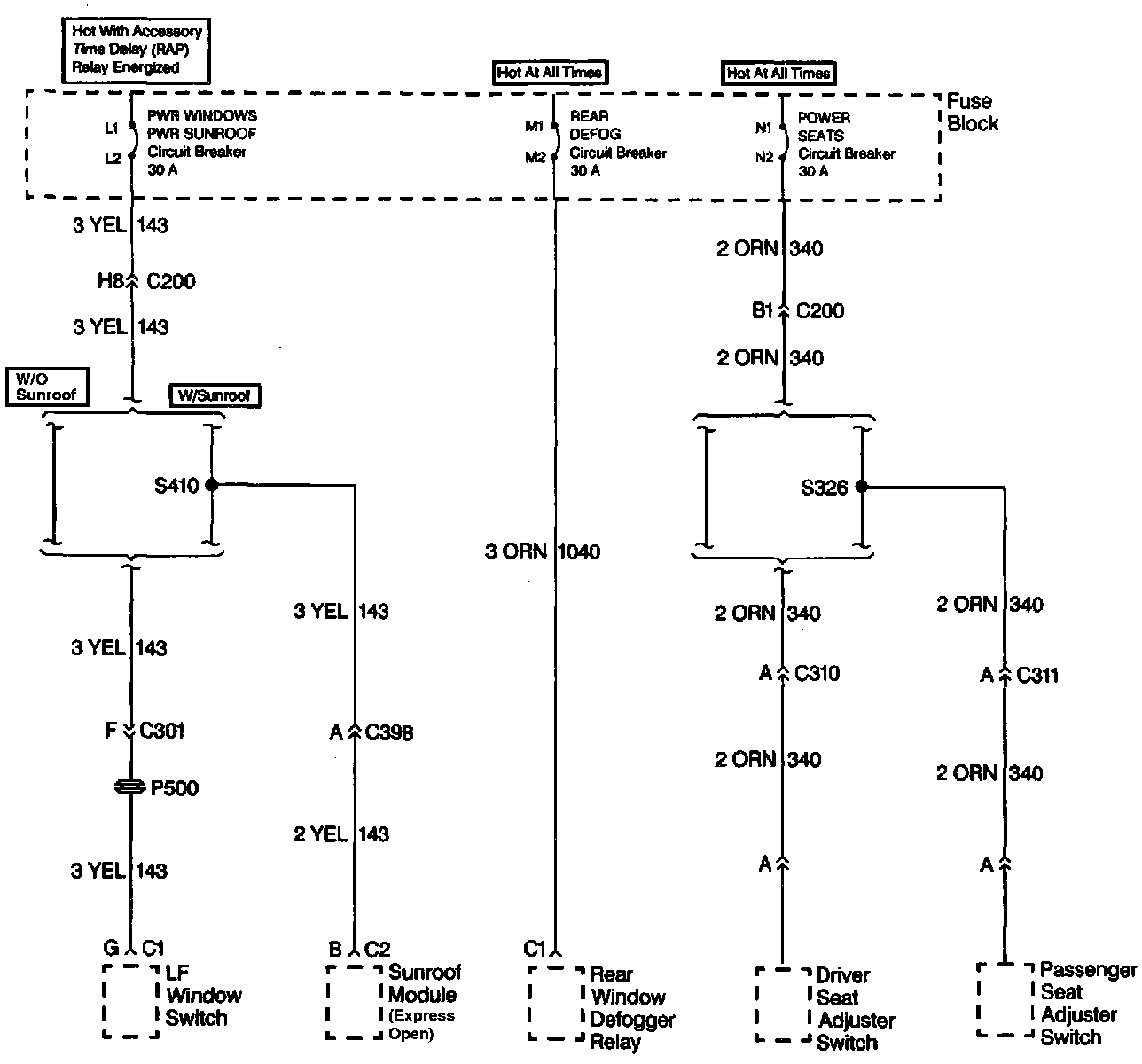 PWR Windows-PWR Sunroof, Rear Defog And Power Seats Circuit Breakers: