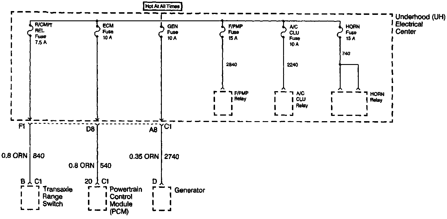 R/CMPT REL, ECM, GEN, F/PMP, A/C CLU & Horn Fuses
