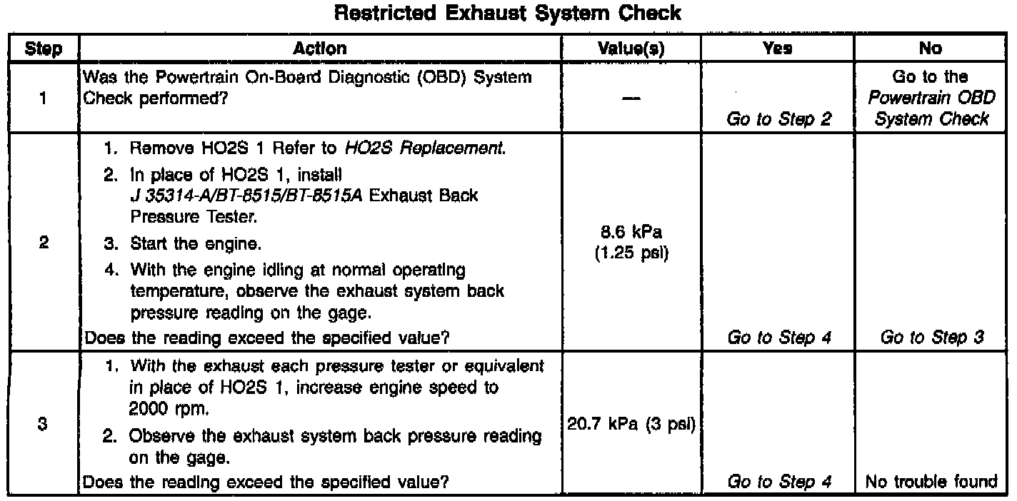 System Check - Restricted Exhaust