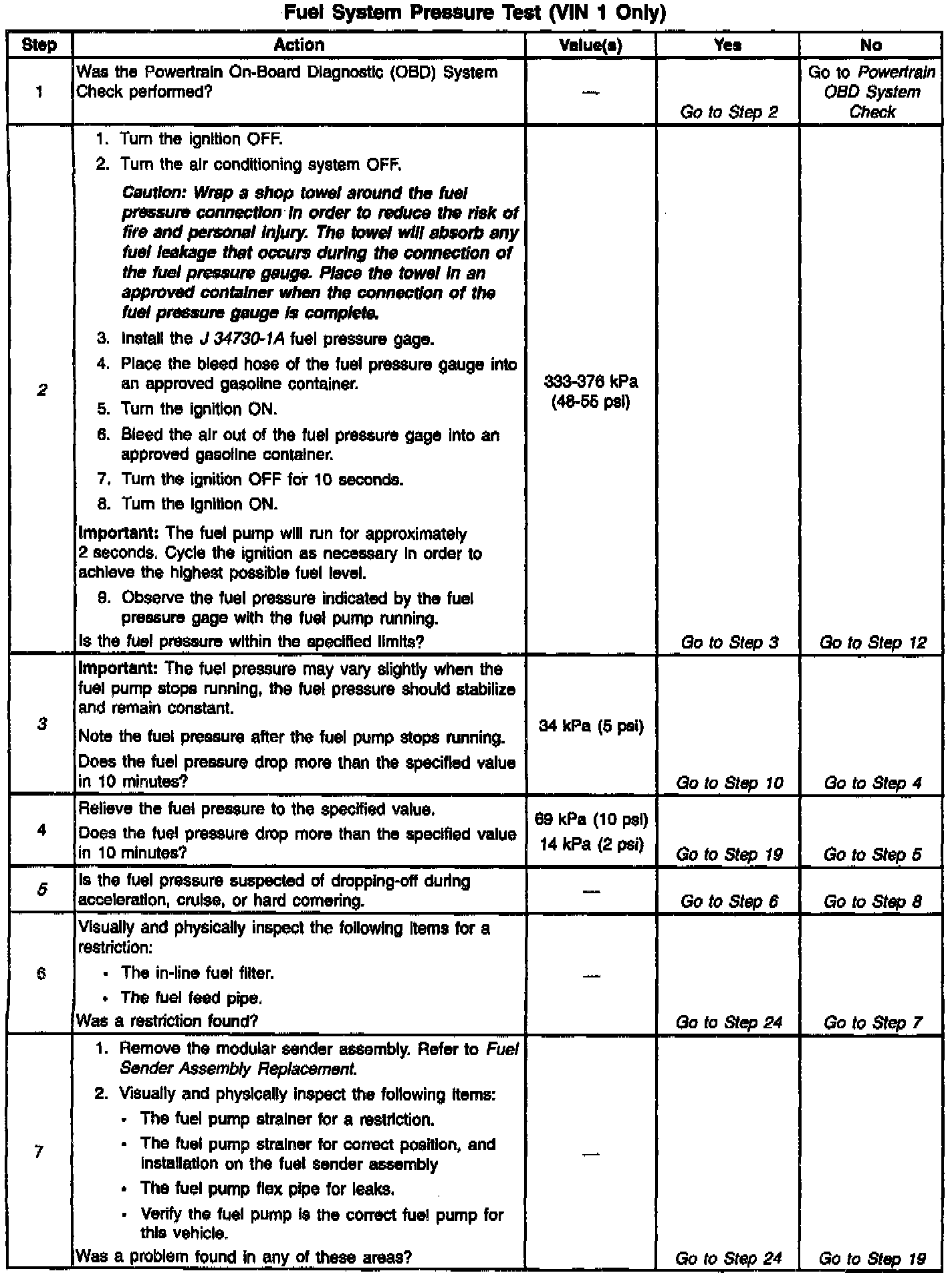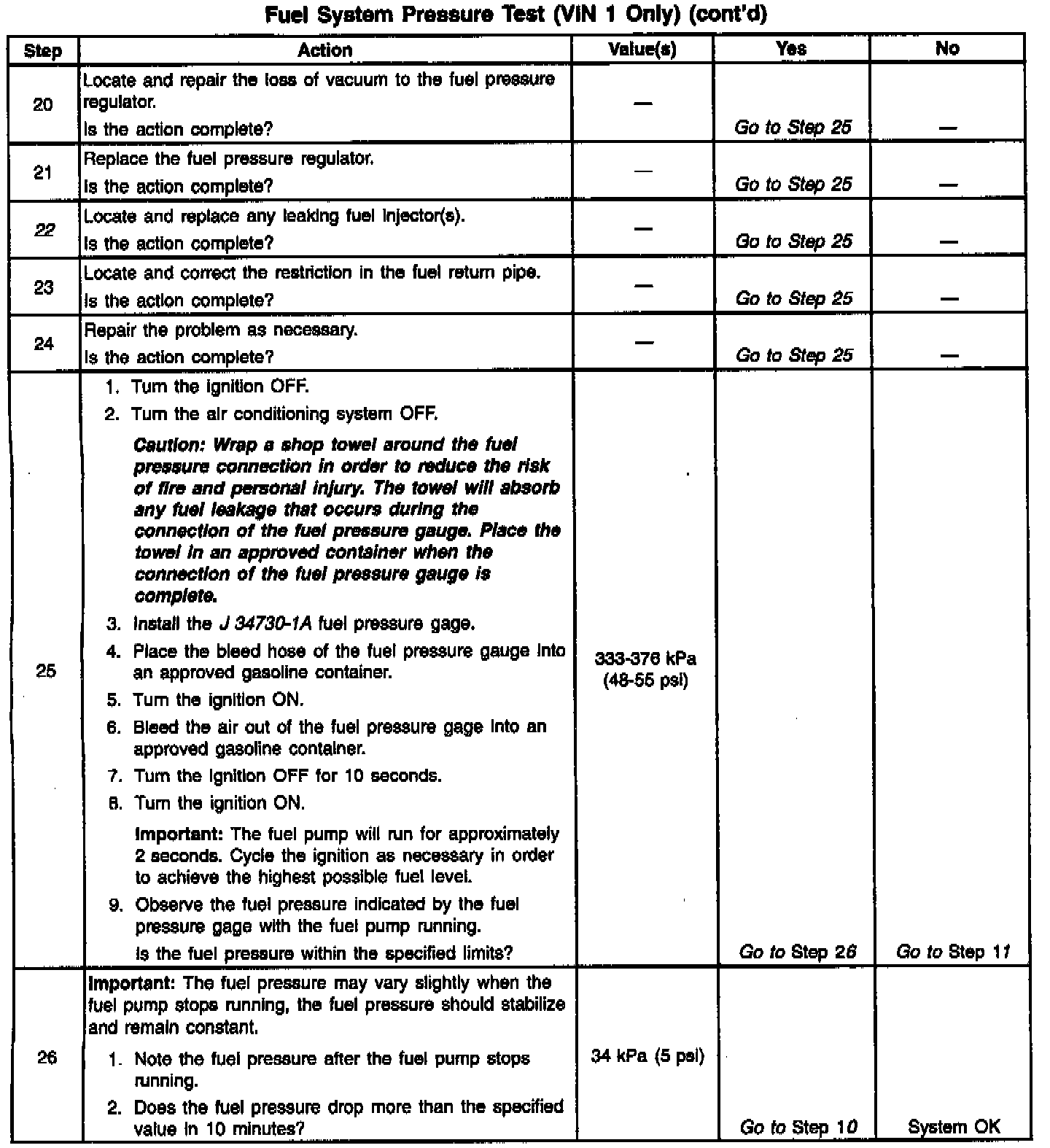 13. This test determines if the high fuel pressure is due to a restricted fuel return pipe or if the high fuel pressure is due to a faulty fuel pressure regulator.
