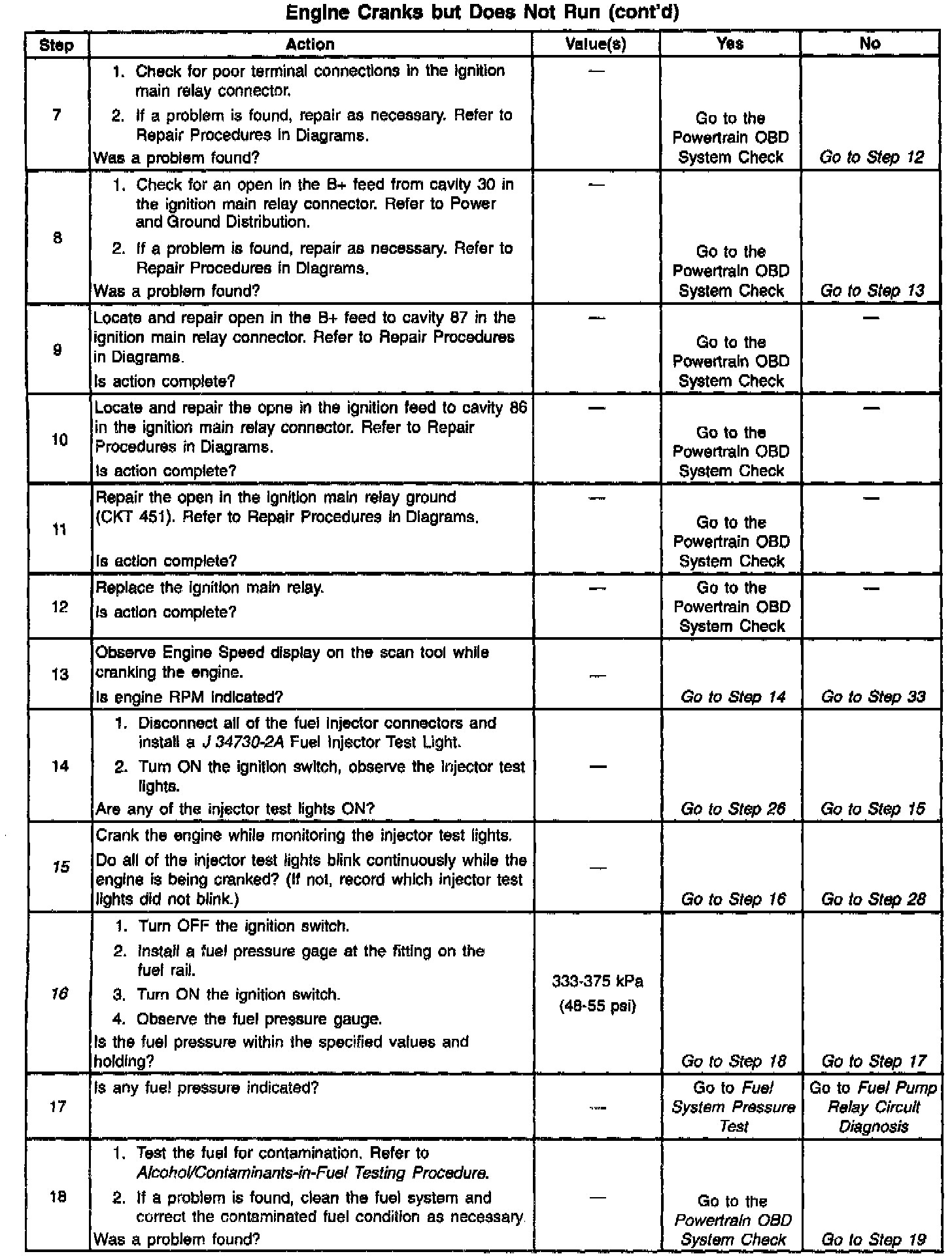 Number(s) below refer to the step number(s) on the Diagnostic Table: