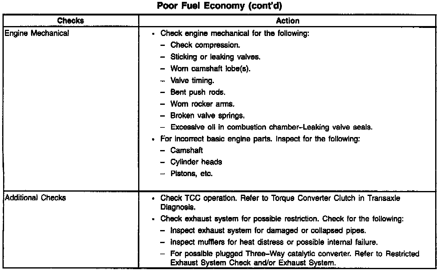 Poor Fuel Economy