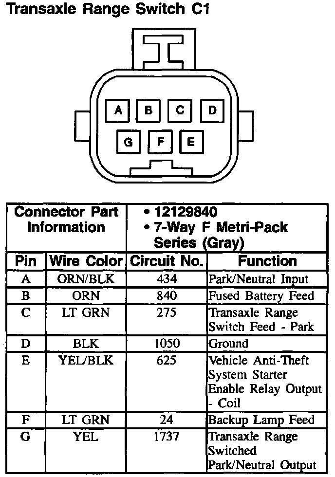 Transaxle Range Switch: C1: