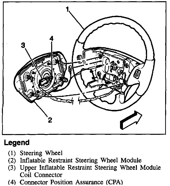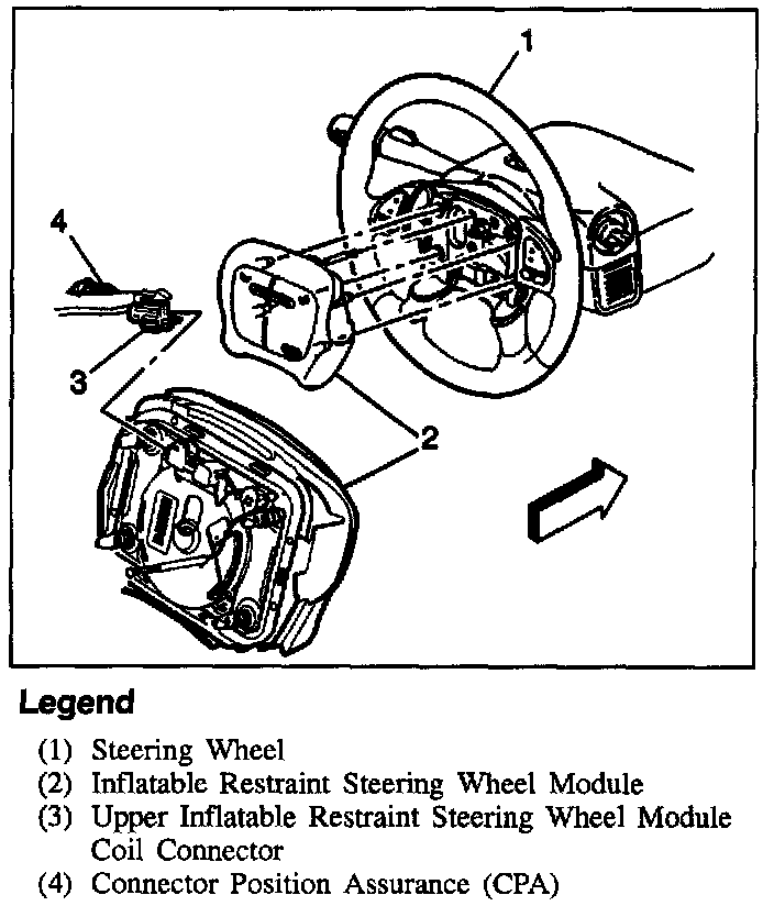 The inflator modules consist of an inflatable bag and an inflator. An inflator consists of a canister of gas-generating material and an initiating device. The initiator is part of the deployment loop. When the vehicle is in a frontal crash of sufficient force, the inflatable restraint Sensing and Diagnostic Module (SDM) causes current to flow through the deployment loops. Current passing through the initiator ignites the material in the inflator module. The gas produced from this reaction rapidly inflates the air bag.