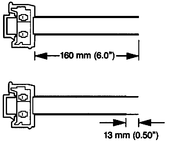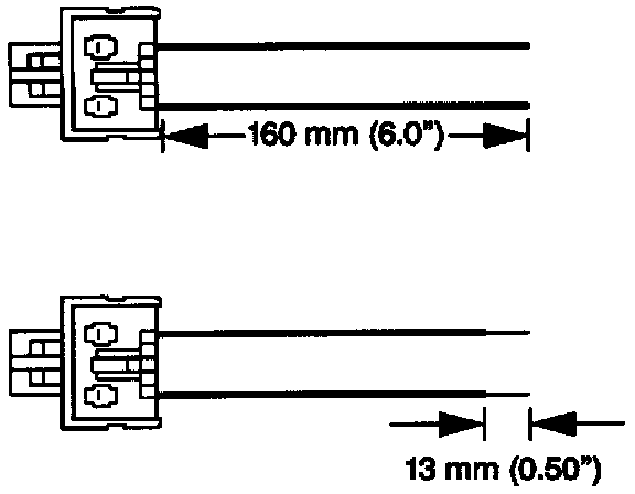 9. Strip 13 mm (0.5 inch) of insulation from both ends of the wires cut in the previous step.