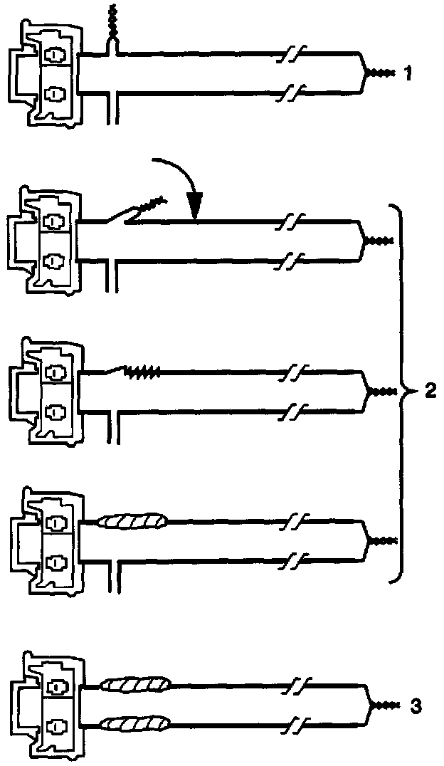 19. Cut two 6.1 m (20 feet) deployment wires from 0.8 mm2 (18 gauge) or thicker multi-strand wire. Use these wires to fabricate the passenger deployment harness.