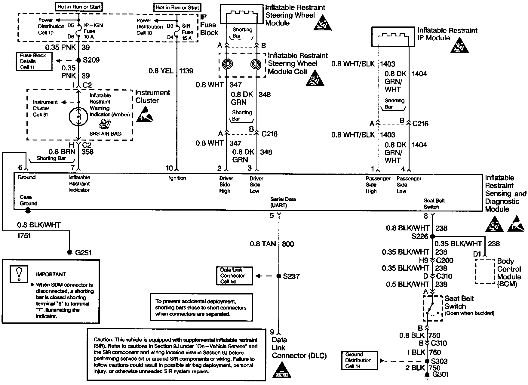 This table assumes that the SIR DIAGNOSTIC SYSTEM CHECK and either a symptom table or a diagnostic trouble code table diagnosis has been performed. When all circuitry outside the inflatable restraint Sensing and Diagnostic Module (SDM) has been found to operate properly, as indicated by the appropriate diagnostic table, and the symptom or DTC remains current, the following diagnostic procedures must be performed to verify the need for SDM replacement.