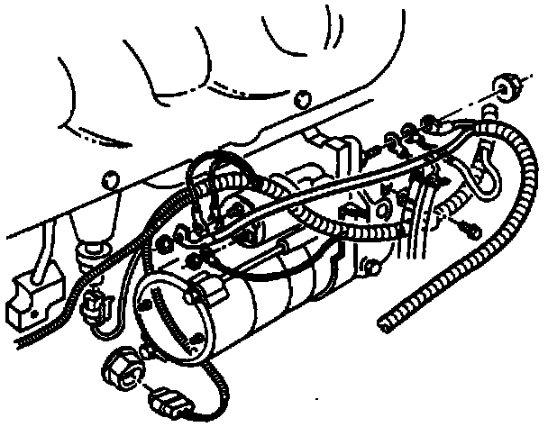 4. Battery ground (negative) cable and cable nut to transaxle stud.