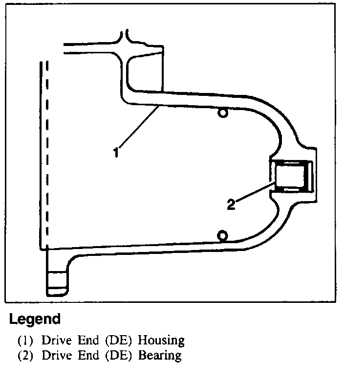 Be sure that the Drive End (DE) bearing has not spun in the housing. If the DE roller type bearing has spun, replace the DE housing and bearing. Do not lubricate the DE bearing. If the DE roller type bearing is dry or damaged, replace the DE bearing. Install the new DE bearing into the DE housing. Refer to "Specifications".