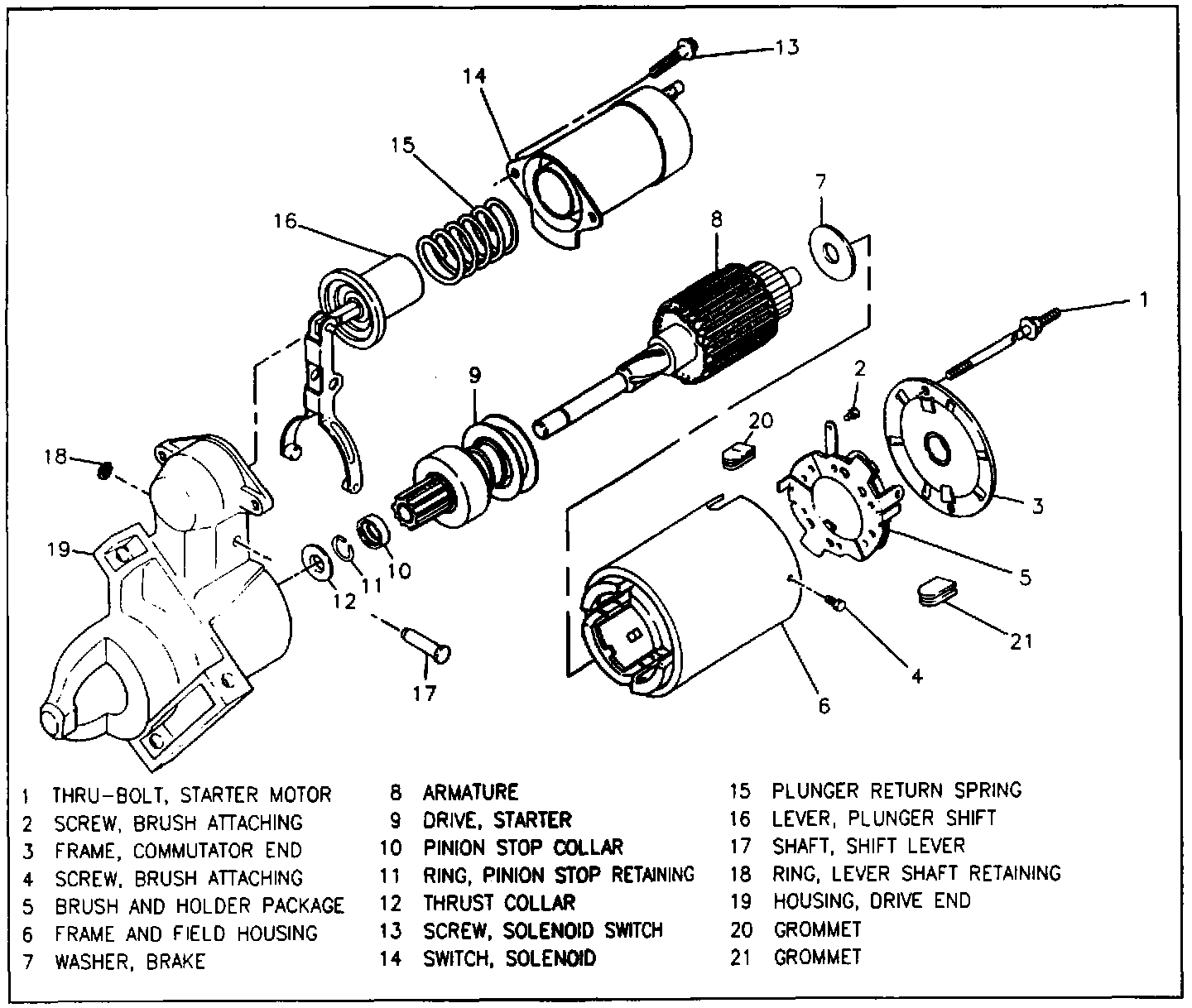 6. Armature with starter drive from DE frame by tilting to disengage drive collar from lever.