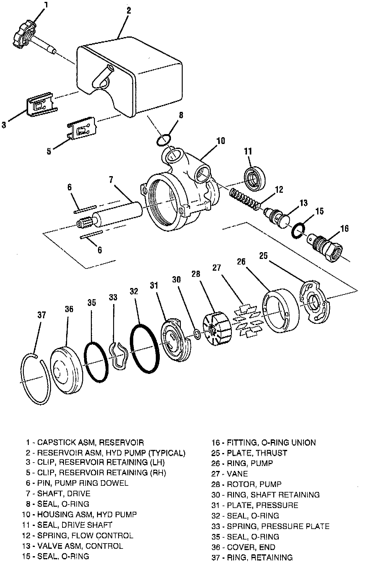 4. Fitting ( 16) into hydraulic pump housing assembly (10).