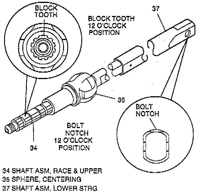 ^ Align inner block tooth of lock plate to block tooth of race & upper shaft assembly (34).
