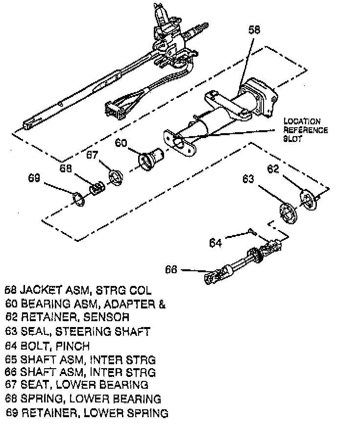 15. Route lower coil wire aloe, steering column jacket assembly (58).