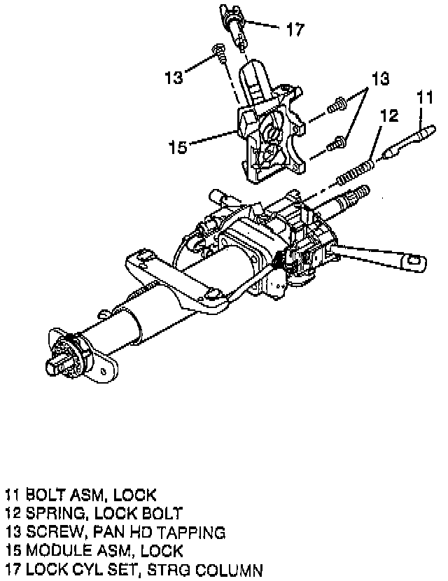 ^ Push lock bolt (11) into steering column housing assembly (26) until flush.