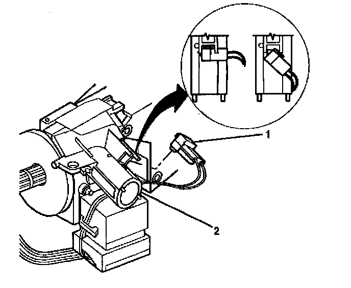 3. Install the key alarm connector (1) into the lock module assembly (2).